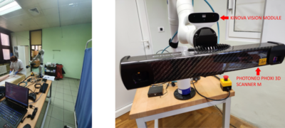 For 3D reconstruction of wounds, Ferit uses the Photoneo PhoXi 3D Scanner model M, which is attached as an end effector to the Kinova Gen3 7-axis robot.